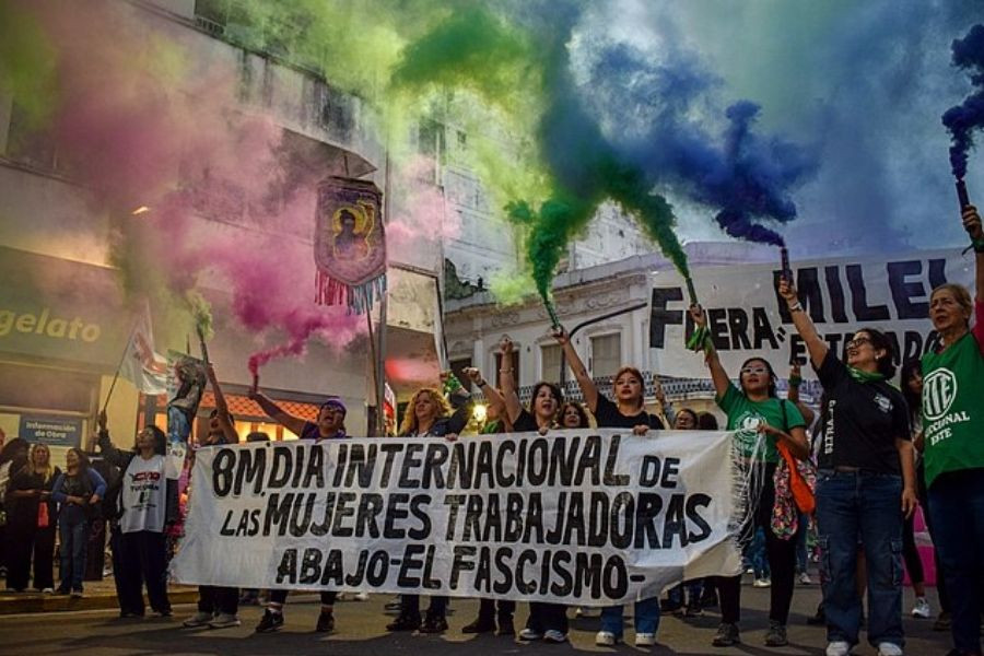 Bu sene 8 Mart’ta da kadınlar Milei hükümetine karşı ses çıkarttı. Meclis önünde binlerce kadın mor ve Arjantin kadınlarının simgesi haline gelen yeşil fularlarıyla barikat kurdu. İşsizlik ve güvencesizlikle karşı karşıya kamusal haklarını savunan kadınlar, neoliberal politikalara karşı “Ni un paso atrás” (Geriye bir adım bile yok!) sloganı ile taleplerini yükseltti.