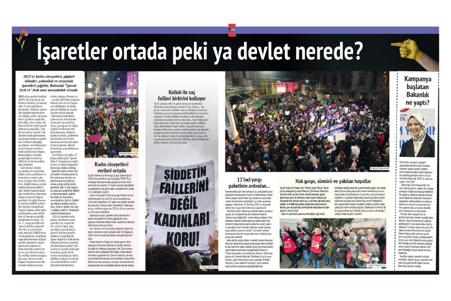 2025’te işaretler ortadaydı. Söz konusu olan işaretler ise, o işaretlerin izlerini takip edip, gereğini yapmak kimin görevi? Kadına yönelik şiddetin yaygınlığı bir işaret değil mi? Kadınların ellerinde koruma kararları ile öldürülmesi peki? Yoksulluk ve işsizlik nedeniyle kadınların gidecek bir yerleri olmadığı için ölüm tehlikesi pahasına kalmak zorunda kaldıkları evler? İşaretleri hatırlatalım.