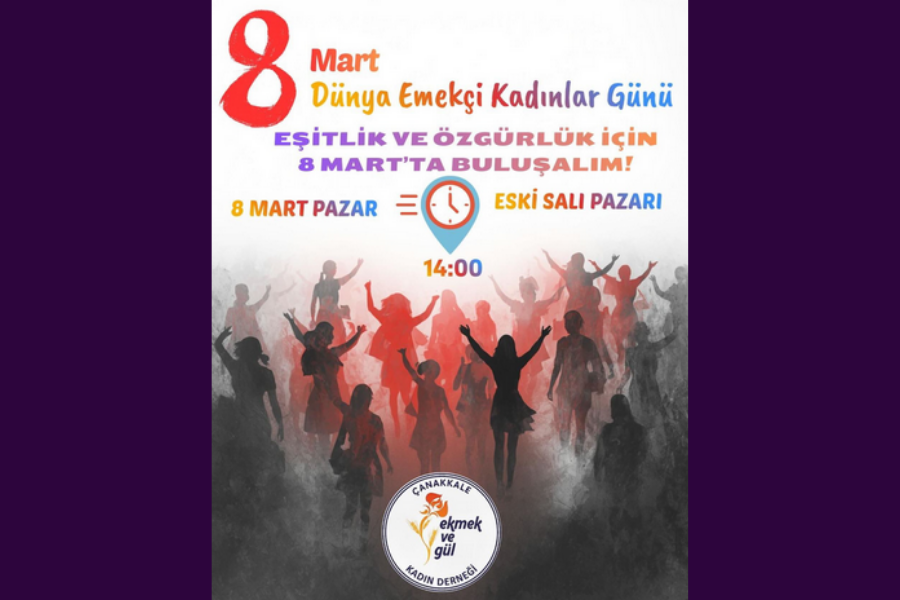 Çanakkale Ekmek ve Gül Kadın Derneği, 8 Mart'ta tüm Çanakkaleli kadınları Eski Salı Pazarı'nda buluşmaya çağırıyor.