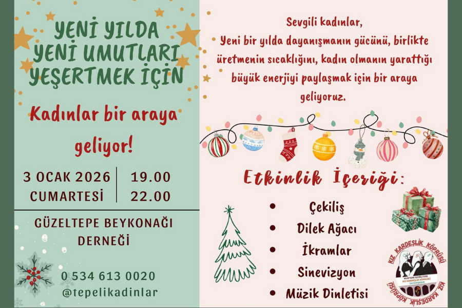Nurtepe Güzeltepe Kız Kardeşlik Köprüsü Dayanışmasının çağrısıyla kadınlar 3 Ocak'ta yeni yılı birlikte kutlayacak.