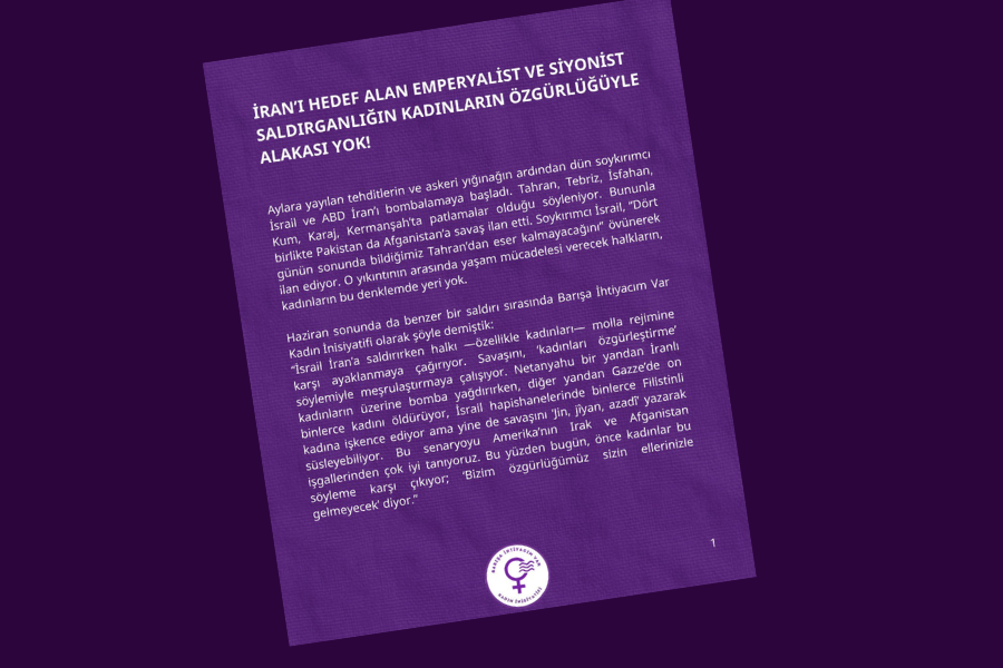 Hürmüzgan eyaletine bağlı Minab kentinde bir ilkokulun hedef alındığı, 85 kız öğrencinin katledildiği belirtilen açıklamada; “Saldırıyı canlı yayında ‘kadınlar için özgürlük yolu açıldı’ diyerek sunan emperyalistler İran’da kadınları ve kız çocuklarını bombalıyor. Gazze’de işgali “barış” adı altında aklayan ve Türkiye’nin de parçası olduğu Gazze Barış Kurulu’na üye ülkeler, bölgedeki inşaat ve rant hesaplarını bozacağı için İran’ın Filistin direniş örgütlerine desteğini bir sorun olarak görüyor. Nükleer programı bahane eden ABD ve AB ticari, siyasi, finansal yaptırımları sürdürüyor, ambargolar İran halkını her geçen gün enflasyonla yoksullaştırıyor. Soykırımcı İsrail ise hiçbir yaptırım uygulanmadan bir yandan müzakere sürecinde İran’ı bombalarken diğer yandan Batı Şeria’yı işgal ediyor, Lübnan’a ve Yemen’e saldırıyor. Alevi, Dürzi, Kürt kadınları katleden, ‘kadın pazarları’ kuran IŞİD zihniyetli HTŞ çetelerinin yönetiminde işlenen insanlık suçlarına rağmen Suriye’ye yönelik ambargolar ise tek tek kaldırılıyor çünkü artık Suriye hava sahası İsrail füzelerine açık. Uluslararası düzenin tüm normları emperyalistlere göre şekilleniyor. Molla rejimi ise yıllardır kadınların bedenlerini, hayatlarını mutlak bir tahakküm altında tutuyor, sosyalist örgütlenmeleri, işçi sınıfının sendikal mücadelesini baskılıyor, Kürtlerin, Beluçların, Azerilerin, Ahvaz Araplarının haklarını gasbediyor, tüm toplumsal muhalefeti sindirmek için ayaklanmaları kanla bastırıyor, binlerce insanı idam ediyor. Soykırımcı İsrail - ABD saldırganlığı ile molla rejimi arasındaki ikilemde kimseye özgürlük yok, biliyoruz” ifadeleri kullanıldı.