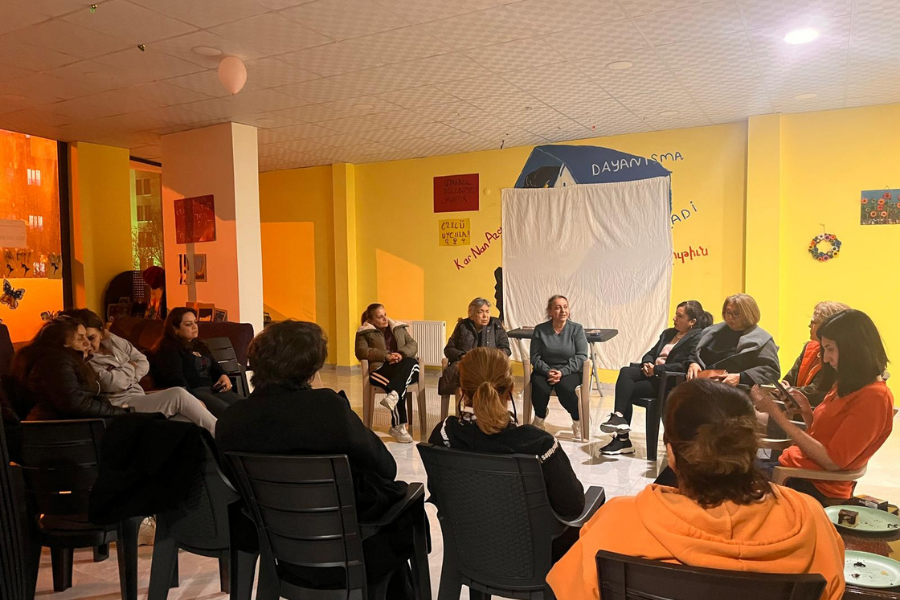 Film gösterimi öncesi dernek adına konuşma yapan Derya Çoskun, “8 Mart’a doğru giderken Kadın Dayanışma Derneği olarak bir dizi etkinliğimiz olacak. Bu etkinliklerin güçlü geçmesi için hepinizi dayanışmaya, birlikte olmaya çağırıyoruz. 2026 siyasi açıdan ve direniş açısından çok yoğun bir yıl olacak. Aile yılı tartışmaları başta olmak üzere yargı paketleri birçok sıkıntıyı da beraberinde getiriyor. Okullarda Ramazan gerekçe gösterilerek Ramazan ile ilgili programlar yapılması, çocukların camiye götürülmesi, anaokulundan başlayarak liseye kadar çocukların baskı altına alınması büyük tepkilere neden oluyor. 2026 kadınlar açısından zor bir yıl olacak. Bu yüzden yan yana gelerek mücadeleyi büyütmeliyiz.” dedi.