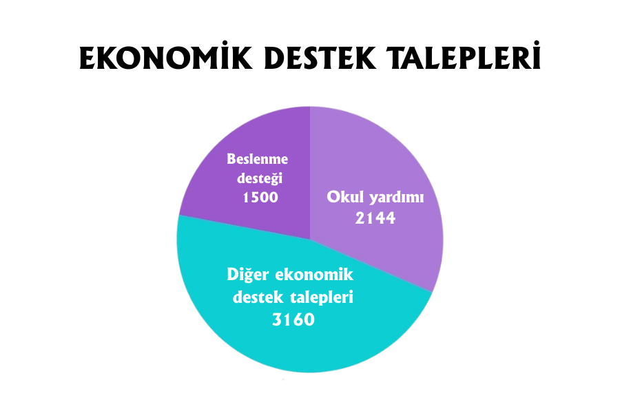 Başvuranların 1500’ü çocuğu için beslenme desteği için ulaşırken, 2 bin 144’ü çanta, kırtasiye, üniforma gibi okul ihtiyaçlarını karşılamak için derneğe ulaşıyor. Her yıl daha çok çocuk okula aç gidiyor, Milli Eğitim Bakanlığı da yargı da bunu görmezden gelmeye devam ediyor.