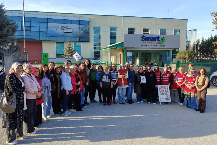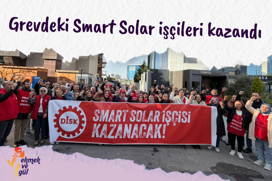 Gebze Organize Sanayi Bölgesinde kurulu bulunan Birleşik Metal İş Sendikası üyesi Smart Solar işçilerinin insanca yaşanacak bir ücret talebi ile çıktıkları grev, 114. gününde kazanımlarla sonuçlandı. En düşük ücret 65 bin TL seviyesine yükseldi. Grev sürecinde patronun grev kırıcılık ve işten atma saldırılarına karşı direnen işçiler; işten çıkarılan 44 işçinin geri alınmasını, önceki TİS döneminde kazanılmış hakların geriye götürülmesinin iptal edilmesini ve ortalama ücretlerin yaklaşık yüzde 50 oranında artırılmasını sağladı. Sözleşmenin ikinci 6 aylık dönemi için ücretlere enflasyon + yüzde 2 refah payı şeklinde artış yapılacak. Tüm işçilere 85 bin TL banka promosyonu ve geriye dönük ücret zammı farkları ödenecek. 1 Mayıs’ta işçilere 3 yevmiye ücret yatırılacak.