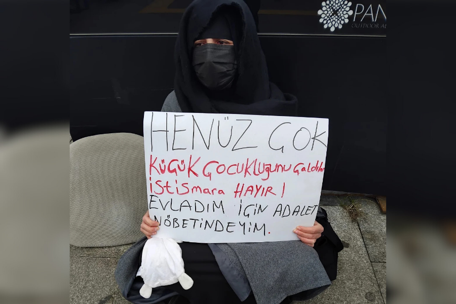 Kuran’a Hizmet Vakfı yöneticisinin, kızına cinsel istismarda bulunduğu iddiasıyla açılan dava sürerken, mağdur çocuğun annesi D.Ş. adliye önünde adalet nöbeti başlattı.