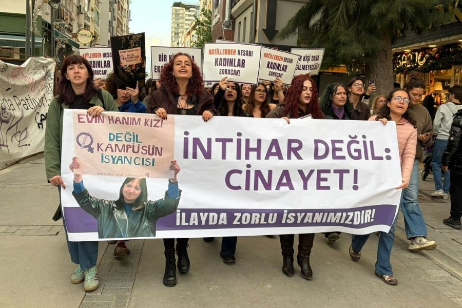 İzmir’de kadınlar, Karadeniz Teknik Üniversitesi’nde Uluslararası İlişkiler bölümünde okuyan 18 yaşındaki İlayda Zorlu’nun 17 Nisan’da, polis ve aile iş birliği içerisinde kadınlara ve gençliğe yönelik uyguladığı sistematik baskı politikaları sonucu aile evinde katledilmesine tepki göstermek için yürüyüş ve basın açıklaması düzenledi. Alsancak Gar önünde toplanan kadınlar Türkan Saylan Kültür Merkezi önüne yürüdü. “İntihar değil cinayet” yazılı pankart arkasında bir araya gelen kadınlar sık sık “İlayda’nın katili saray rejimi”, “Katil polis hesap verecek”, “Kadın cinayetleri politiktir”, “Devlet elini yaşamımdan çek” sloganlarını attı. Türkan Saylan Kültür Merkezi önünde yapılan açıklamada basın metnini Üniversiteli Kadın Kollektifinden bir öğrenci okudu.
