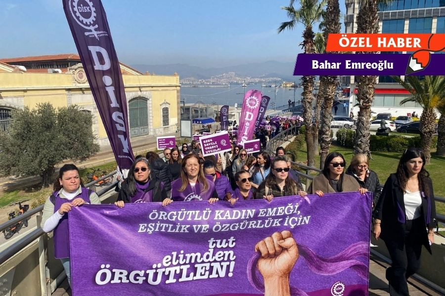 Devrimci İşçi Sendikaları Konfederasyonuna (DİSK) bağlı sendikalarda örgütlü kadın işçiler, çalışma hayatında karşılaştıkları sorunları ve 8 Mart’a hangi taleplerle gittiklerini anlattı. Kadın işçiler; iş yerlerinde eşitlik, güvenli çalışma koşulları, kreş hakkı ve kadına yönelik şiddetin son bulması taleplerini dile getirdi.