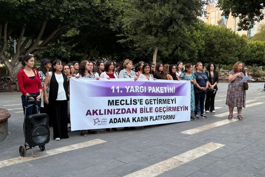 Adana Kadın Platformu, iktidarın Meclis’e getirmeye hazırlandığı 11. Yargı Paketi’ne tepki gösterdi. Platform, kadınların, çocukların ve LGBTİ'lerin haklarını hedef aldığı belirtilen düzenlemelere karşı İnönü Parkı’nda bir basın açıklaması yaptı.