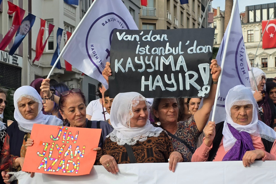 Kayyımların geri çekilmesi ve kayyımların atanmasına zemin oluşturan 674 sayılı Kanun Hükmünde Kararnamenin iptal edilmesini talep eden kadınlar, kayyımlarla kadınların gasbedilen haklarının, kurdukları kurumların ve maddi varlıklarının geri verilmesini istediklerini belirtti.