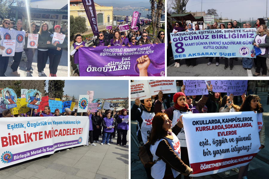 İl merkezleri ve ilçelerde gerçekleşen 8 Mart eylemleri genel olarak kitleseldi. Ancak iş yeri eylemleri ve kutlamaları görünür olmadı. Metal işçilerinin, sağlık işçilerinin bulundukları alanlarda gerçekleştirdikleri birkaç açıklama ve eylem dışında ne iş yerlerinde kutlamalar gerçekleşti ne de sendikalar 8 Mart alanlarında belirgin bir varlık gösterebildi. Eylemlerde yoksulluk ve güvencesizlik sık sık dile getirilse de kadın işçiler taleplerini sendikalarıyla 8 Mart alanlarına taşıyamadı. Buna rağmen kadınlar, Şık Makas, Temel Conta, Dardanel işçileri gibi direnişte olan emekçilere selam göndermeyi de ihmal etmedi.