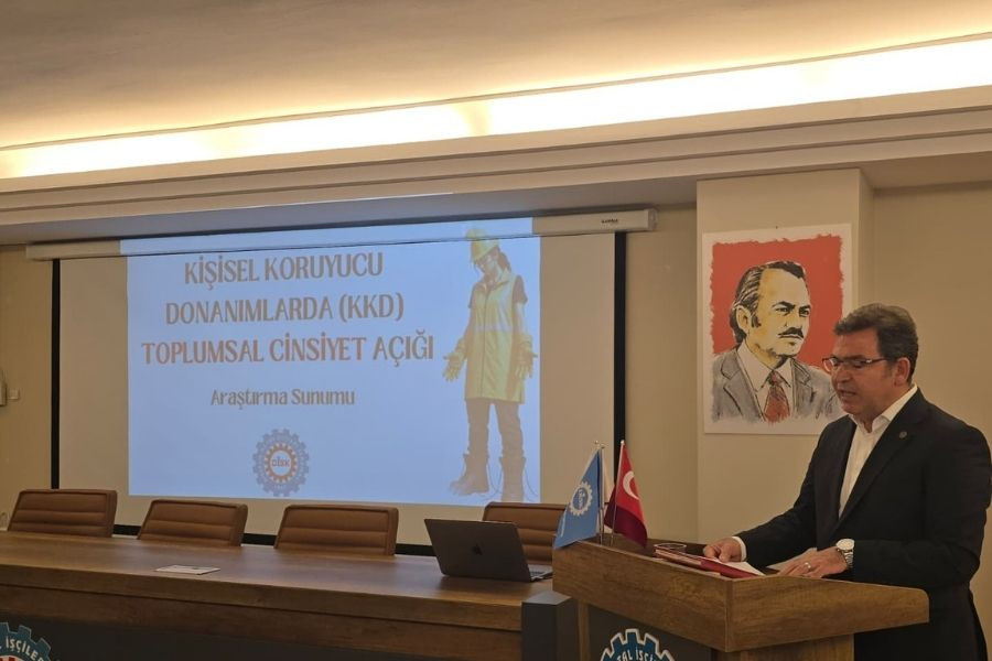 Birleşik Metal-İş Sendikası, Kişisel Koruyucu Donanımlarda (KKD) Toplumsal Cinsiyet Açığı Araştırmasının sonuçlarını İstanbul Genel Merkez binasında sundu. 454 kadın, 456 erkek toplam 910 metal işçisi ile yapılan anketlerin sonucu, kadın işçilerin yeterli ve nitelikli kişisel koruyucu ekipmana erişmekten uzakta olduğunu gösterdi. İşçi güvenliğini sağlamak açısından en son halka olan Kişisel Koruyucu Donanımlar, iş kazalarını meslek hastalıklarını önlemek açısından yine de önemli bir yerde duruyor. Birleşik Metal-İş Sendikası İşçi Sağlığı ve İş Güvenliği Dairesi ile Sınıf Araştırmaları Merkezi’nin (BİSAM) gerçekleştirdiği araştırma sonucunda kadın işçilere verilen kişisel koruyucu donanımların erkek bedenine uygun üretildiği, kadın işçilerin koruyucu donanıma erişiminin erkeklere göre daha düşük olduğu ortaya çıkıyor.