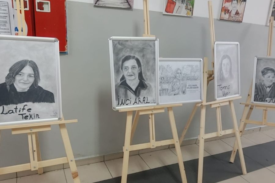 Öğrencilerin hazırladığı ana panoda kadına yönelik şiddet konusu işlendi. Panoda, son bir yılda şiddet nedeniyle hayatını kaybeden kadınların sayısını temsil eden “408” verisine yer verilerek “Kadına Yönelik Şiddete Dur De!” mesajı öne çıkarıldı. “Sessizlik Şiddeti Büyütür” ve “Susturulan Kadınların Sesiyiz” yazılı çizimlerle toplumsal duyarlılık çağrısı yapıldı.