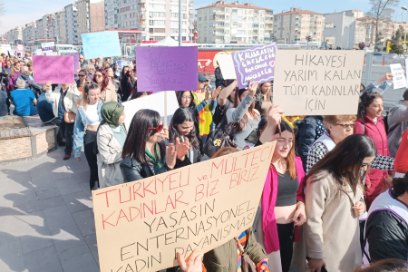 Kadın işçiler, emekçiler, öğrenciler talepleriyle 1 Mayıs alanındalar.