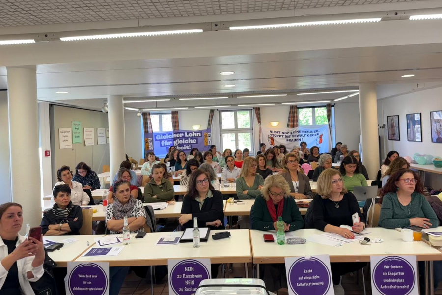 Almanya Göçmen Kadınlar Birliği (GKB), 25 - 27 Nisan tarihleri arasında Kassel'de çeşitli şehirlerden, dernek ve gruplardan kadınlarla bir araya gelerek gerçekleştirdiği kongresini başarıyla tamamladı. Kongre boyunca savaş ve militarizm, çalışma ve yaşam koşulları, artan ırkçılık, sağın yükselişi gibi güncel gelişmeler üzerine tartışmalar yürütüldü. Çalışma gruplarında GKB’nin çalışmaları değerlendirildi.