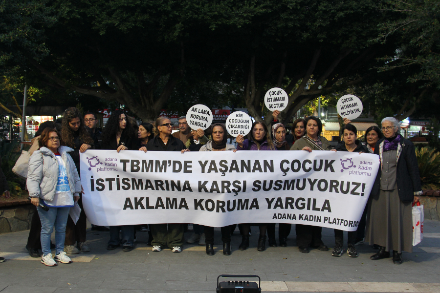 Adana Kadın Platformu'nun çağrısıyla kadınlar Mecliste gerçekleşen çocuk istismarına karşı basın açıklamasında bir araya geldi.