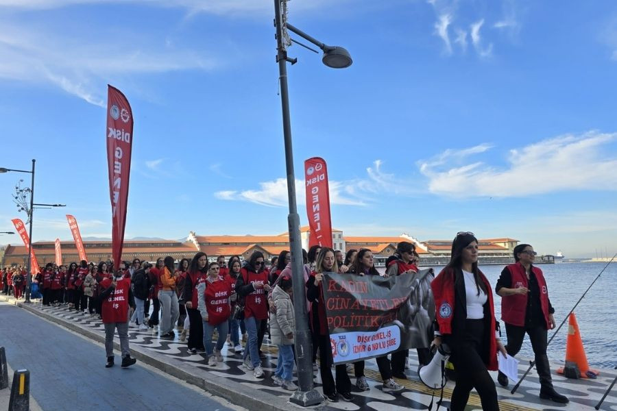 enel-İş 6 No'lu Şube üyesi kadın işçiler ise Konak SGK önünde toplanarak "Kadın cinayetleri politiktir" pankartı ile "Kadın yaşam özgürlük", "Jin Jiyan Azadi", "Yaşasın kadın dayanışması" sloganları atarak Cumhuriyet Meydanına yürüdü burada basın açıklaması gerçekleştirdi.