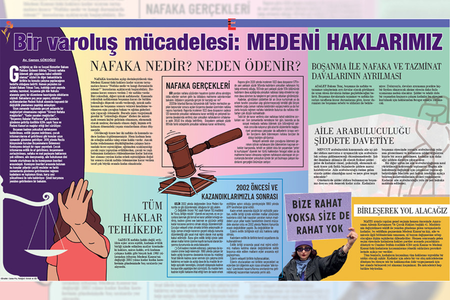 Sadece nafaka hakkı değil; evlilikte eşler arası eşitlik, kadının evlilik birliği içinde edinilen mallar üzerindeki hakları, miras hakkı, evli kadının çalışma hakkı gibi birçok hak 1985 yıllarından itibaren Medeni Kanun’un değiştiği 2002 yılına kadar kadın hareketinin gündeminde baş sıralarda yer alıyordu.