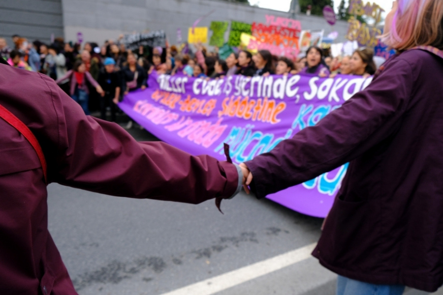 25 Kasım öncesi Esenyurt’ta kadınlar şiddetin birçok yönünü konuşmak için bir araya geldiler. İstanbul’da yoksulluk ve suç denildiğinde akla ilk gelen semtlerden biri Esenyurt ve bu yoksulluğun doğurduğu şiddeti bir araya geldiğimiz kadınların her biri bir yönüyle anlatıyordu. Bir yandan kapalı kapılarının ardında yaşadıkları ekonomik, fiziksel ya da psikolojik şiddeti konuşurken bir yandan da umutlular, yan yana olmak, evlerinden birkaç saatliğine çıkmış olmak bile yüzlerini allandırıyor.