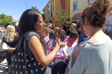 Mahallenin sokaklarında dolaşırken merakla yanımıza gelen çocuklar ne yaptığımızı sordu. Onlara bir öğün ücretsiz sağlıklı yemek istediğimizi söyleyince her biri çok sevindi. “Okulda yemek verecekler!” diye ellerimizden aldıkları bildirilerle mahallenin sokaklarında gezmeye başladılar. Beslenme meselesi sadece velilerin değil, çocukların da ana gündemi.