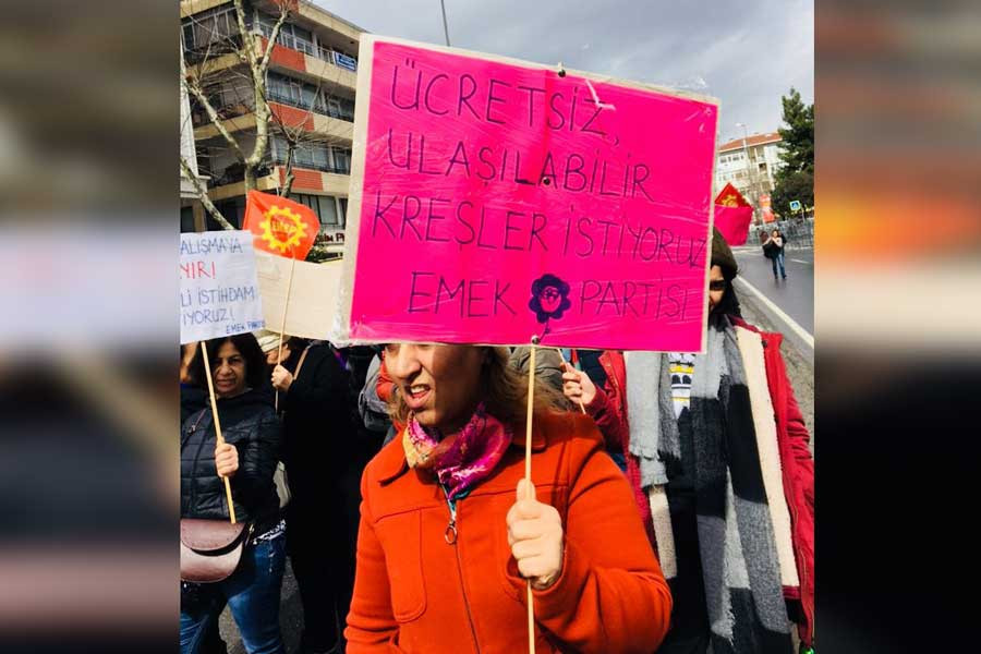 Özel sektörde çalışan ve çocuğuna bakacak kimseyi bulamayan pek çok kadın işten ayrılmaya mecbur bırakılıyor. Çayan da bu kadınlardan biri. Talebi ise açık: Ücretsiz, nitelikli kreşler.