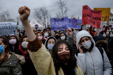 İstanbul Sözleşmesi’nden, haklarımızdan ve hayatlarımızdan vazgeçmiyoruz diyerek karanlığın üstüne el ele tutuşup yürüyen, tek adam rejiminin karşısında onbinler olup sokakları dolduran genç kadınlar var...