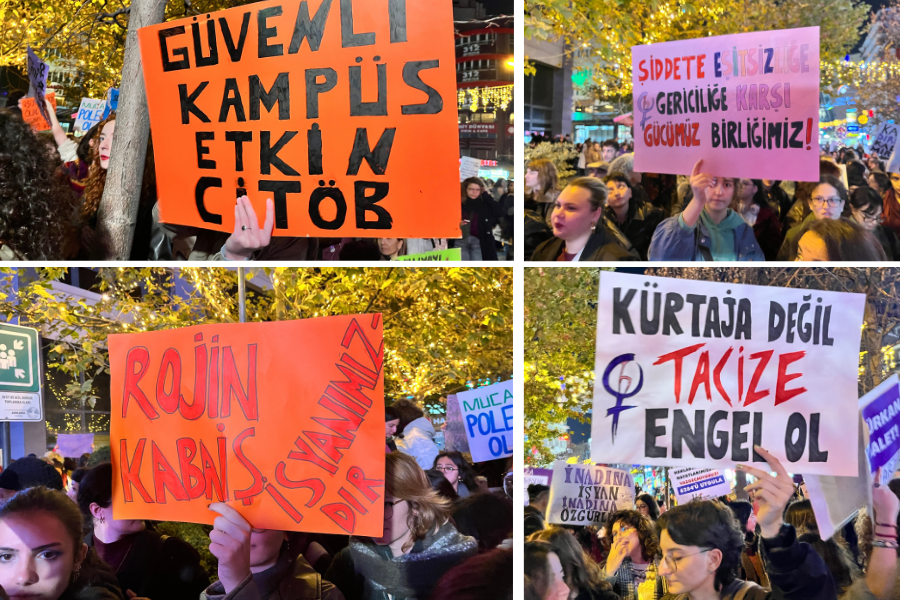 Ankara’da kadınlar 25 Kasım’da şiddete karşı yürüdü. Ankara Kadın Platformunun çağrısıyla Yüksel caddesinde bir araya gelen kadınlar, “Biz kadınlar birbirimizin elini sımsıkı tutmaya, bir arada olmaya, direniş mirasını birbirimizden devralmaya devam edeceğiz. Çünkü biliyoruz: gerçek adalet biz kadınların mücadelesi, direnişi ile sağlanacak” dedi.