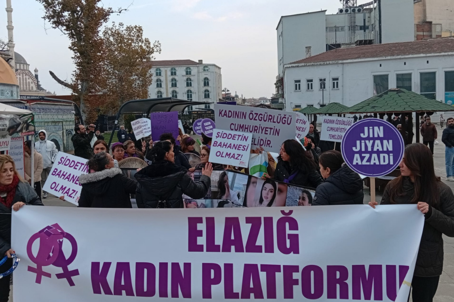 Elazığ Kadın Platformu’nun çağrısıyla 25 Kasım Kadına Yönelik Şiddete Karşı Uluslararası Mücadele Günü kapsamında saat 16.00’da PTT Meydanı’nda toplanıldı. Kadınlar, saat 16.30’da yürüyüşe başlayarak eski Öğretmenevi önüne yürüdü. Erbane ritimleri, ıslıklar, “Jin Jiyan Azadî”, “Kadın yaşam özgürlük”, “Kadınlara değil erkeklere barikat”, “İstanbul Sözleşmesi yaşatır”, “Kadın dayanışması yaşatır”, “Koruma aklama yargıla”, “Kadına değil şiddete dur de”, “Yasayı anayasayı sözleşmeyi uygula” sloganlarıyla bir yürüyüş gerçekleştirildi. Eski Öğretmenevi önünde yapılan basın açıklamasını Elazığ Kadın Platformu Dönem Sözcüsü Derya Coşkun okudu. Basın açıklamasında kadınlar, Mirabal Kardeşler’in mücadelesini hatırlatarak şu ifadeleri vurguladı: “25 Kasım 1960'ta Dominik Cumhuriyeti'nde Mirabal Kardeşler diktatörlüğe karşı mücadele yürüttükleri için katledildi. 25 Kasım, onların anısına Kadına Yönelik Şiddete Karşı Uluslararası Dayanışma ve Mücadele Günü ilan edildi. Mirabal kardeşlerin kararlılığını, direncini, mücadelesini bugüne taşıyoruz.”