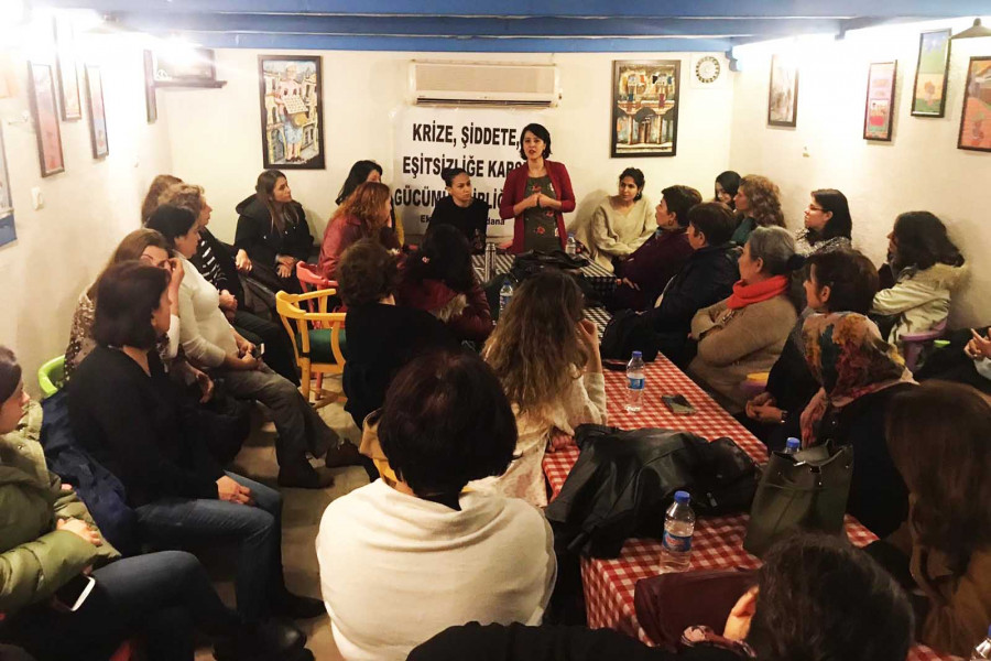 Açılış konuşmasını yapan Emek Partisi İl Başkanı Sevil Aracı, kadınların şiddet, taciz, çocuk istismarı, ekonomik krizin etkileri, mobbing gibi kadınların işyerlerinde yaşadıkları sorunlarla karşı karşıya olduklarını belirterek “Biz de 8 Mart yaklaşırken, sesimiz, soluğumuz olan Ekmek ve Gül dergisinin yayın kurulundan Sevda Karaca ile birlikte, mücadele yöntemlerimizi, yapacaklarımızı konuşmak üzere bir araya geldik. Tüm bunlar karşısında kadınlar olarak güçlerimizi birleştirmek, birlikte bir mücadeleyi örmek zorundayız” dedi.Bugün kadınların bir araya gelme çağrılarına daha fazla yanıt verir durumda olduğunu anlatan Sevda Karaca, "8 Mart'ta bunu daha güçlü söylemek, daha fazla dile getirmek, daha fazla kadınla bunu söylemek gibi bir derdimiz, niyetimiz var ve bu buluşmaları da biz hep birlikte ‘ne yapabiliriz’i konuşmak için gerçekleştiriyoruz” dedi.