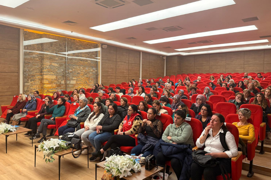 Aydın Efeler’de 25 Kasım Kadına Yönelik Şiddete Karşı Uluslararası Mücadele Günü kapsamında, 21 Kasım’da Nevzat Biçer Konferans Salonu’nda Aydın DİSK Genel-İş Şubesi ve Aydın Ekmek ve Gül Grubunun ortaklaşa düzenlediği “Şiddet Sarmalında İşçi Kadınlar” konulu panelde kadın işçilerin ağırlıkta olduğu bir buluşma gerçekleşti.