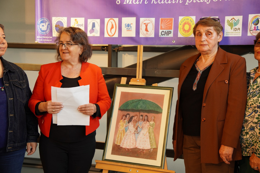 Çanakkale 8 Mart Kadın Platformu, 25 Kasım Kadına Yönelik Şiddetle Uluslararası Mücadele Gününe giderken kadın ressamların eserlerinden oluşan sergi düzenledi. "Hayatlarımızdan ve Haklarımızdan Vazgeçmiyoruz" temalı karma sergide özgürlük, emek, mücadele, dayanışma vurgusu öne çıktı. Çanakkale Belediyesi Sergi Salonu’nda açılan sergide Çanakkale Ekmek ve Gül Grubu’nun hazırladığı kırkyama eserleri, Yeni Kuşak Köy Enstitüsünün, Tüm Emekli Sendikası 2017, Dev Emekli-Sen kadın üyeleri ve bağımsız kadın sanatçıların eserleri yer aldı. Kadınların görünmez zincirlerle çevrili olduğunu hatırlatan platform, sergiyi özgürlük temasına uygun biçimde kurdelesiz açtıklarını ifade etti.