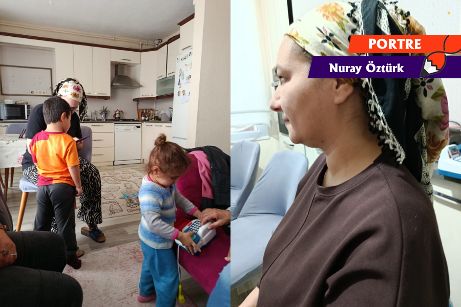 Bornova Atatürk Mahallesi’nde yaşayan Gülcan, 35 yaşında, iki çocuk annesi bir tekstil işçisi. 13 yaşından beri çalışıyor. “İlkokul bitti, ayakçı olarak başladım tekstile. O günden beri hep çalıştım ama sigortasız…” diyor. 2020’de evlenmiş. Çocukları olmuş, şimdi evde. “Çocuklar küçük, kim bakacak? Kreş yok, olsa da parası var” diye anlatıyor.