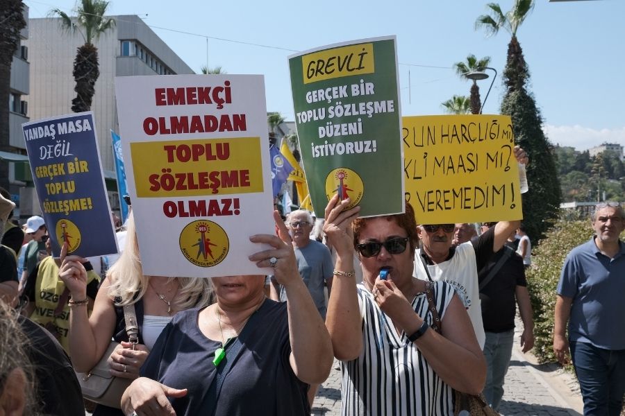 Ankara'da kamu emekçileri ve emeklilerini ilgilendiren 8. dönem toplu iş sözleşmesi görüşmelerinde hükümetin sefalet ücreti dayatmasına karşı iş bırakan konfederasyonlar, Çalışma ve Sosyal Güvenlik Bakanlığı önünde açıklama yaptı. Açıklamada, "Bu teklife karşı yapılacak olan şey birkaç puanlık maaş artışını esas alan müzakere değil mücadeledir" denildi ve genel grevi örgütleme çağrısı yapıldı.