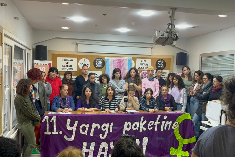 Medeni Haklarımızdan Vazgeçmiyoruz Kampanya Grubu, 11. Yargı Paketine karşı yapılacak eylemde gözaltına alınan iki kadının çıplak aramaya maruz bırakılmasına dair basın açıklaması yaptı.