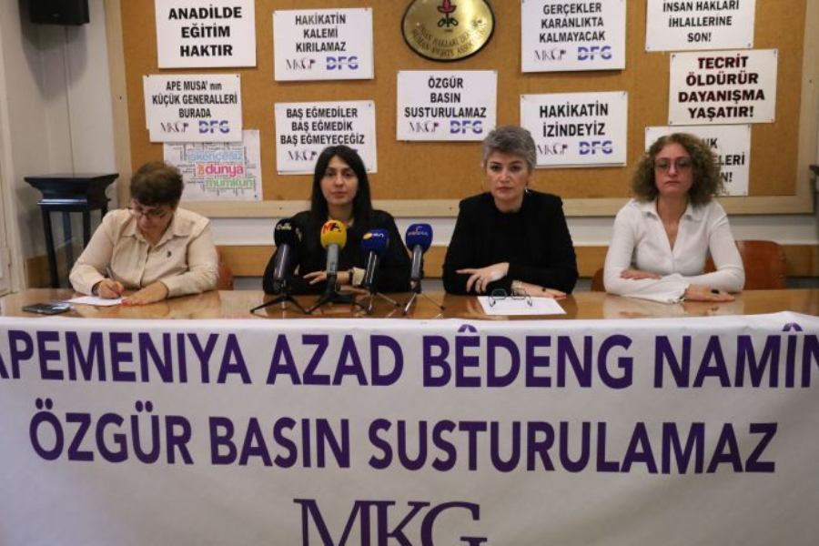 Mezopotamya Kadın Gazeteciler Derneği (MKG), tutsak Dicle Fırat Gazeteciler Derneği (DFG) Eşbaşkanı ve Mezopotamya Ajansı (MA) editörü Dicle Müftüoğlu ile Etkin Haber Ajansı (ETHA) editörü Nadiye Gürbüz’ün görülecek olan duruşmalarına ilişkin Beyoğlu’nda bulunan İnsan Hakları Derneği (İHD) İstanbul Şube binasında basın toplantısı gerçekleştirdi. Toplantının yapıldığı salona Kürtçe ve Türkçe, “Özgür Basın Susturulamaz” pankartı asıldı. Toplantıya özgür basın emekçilerinin yanı sıra DFG üyeleri, Türkiye Devrimci İşçi Sendikaları Konfederasyonu’na (DİSK) bağlı Türkiye Basın, Yayın, Gazetecilik, Grafik-Tasarım, Baskı ve Ambalaj Sanayi İşçileri Sendikası (Basın-İş), Türkiye Gazeteciler Sendikası (TGS) İstanbul Şubesi ve çok sayıda emek meslek örgütü temsilcisi katıldı.
