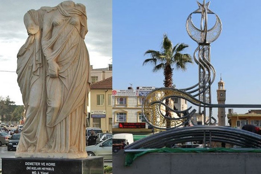 İzmir Torbalı’da Atatürk Meydanı’nda bulunan ana tanrıça heykeli, Demeter ve kızı Kore’nin (Pershephone) geçtiğimiz hafta Torbalı Belediye Başkanı tarafından kaldırılmış ve bu durum sadece İzmir’de değil, ülke genelinde de gündem olmuştu. Tanrıça heykelinin yerine Osmanlı tuğrası koyduran Torbalı Belediye Başkanı Adnan Yaşar Görmez, heykelin kaldırılmasıyla ilgili ilk kez AKP İzmir Milletvekili Atilla Kaya’nın Ayrancılar’da düzenlediği evet mitinginde konuştu ve skandal bir açıklama yaptı. Görmez, heykeli kaldırarak sevaba girdiklerini söyledi, “Müslüman mahallede tanrıça heykeli olmaz” dedi.