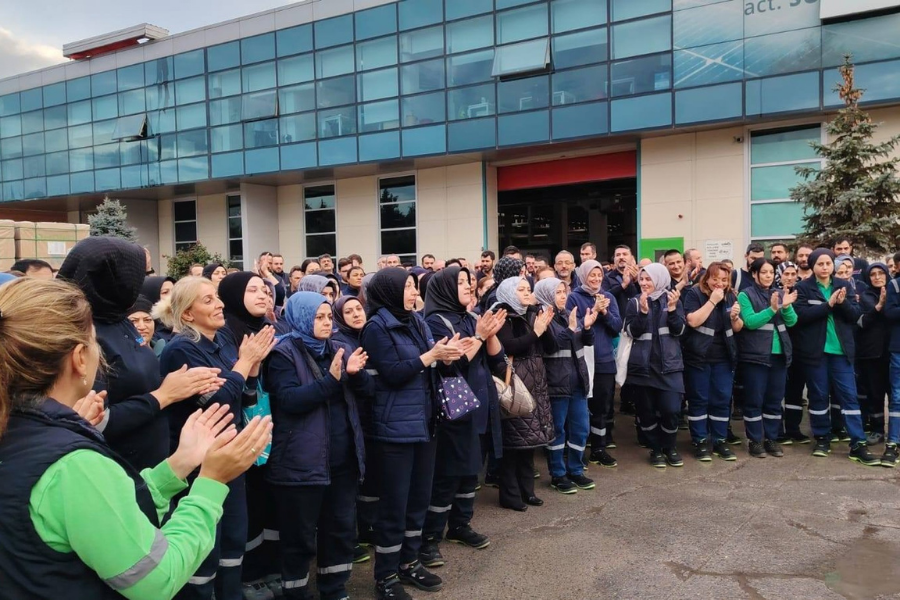 Sendikal hakların tanınmadığı ve işten atmaların yaşandığı Smart Solar’da işçiler kendilerini fabrikaya kapattı. Sabah vardiyasına gelen işçiler de fabrika önünden arkadaşlarına destek verdi.