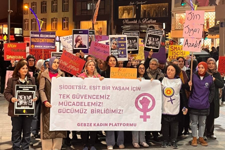 Ellerinde, katledilen kadınların isimlerinin yer aldığı dövizlerin yanı sıra Dilovası’daki iş cinayetlerinde yaşamını yitiren kadınların isimleri ile Digel, Swatch ve Şık Makas’ta grevde olan kadın işçilerin taleplerini taşıyan dövizler de yer aldı.