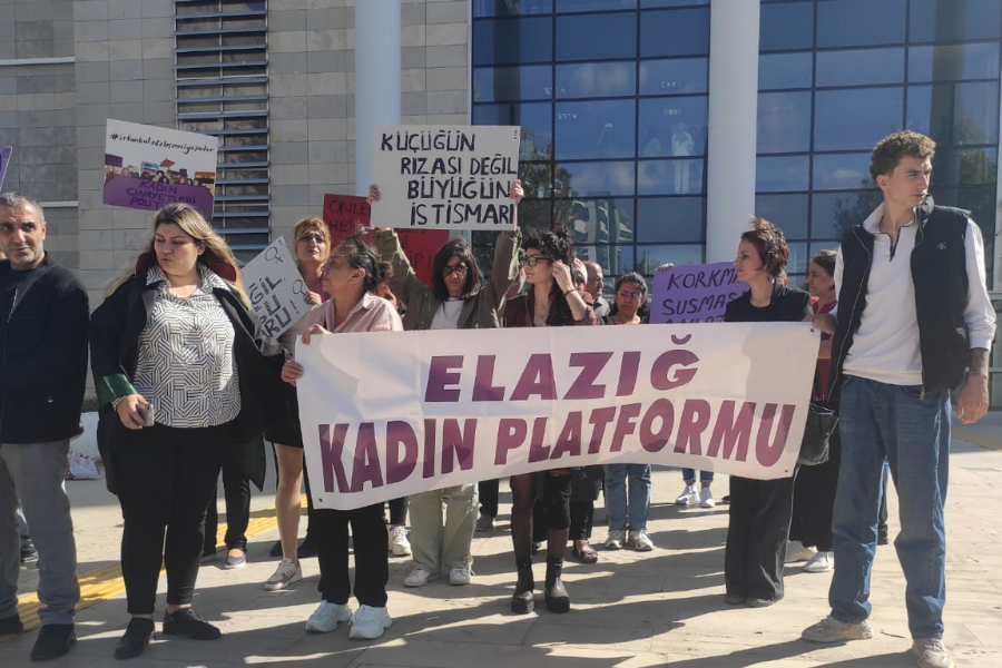 Türkiye Cumhuriyeti Anayasası’nın, Lanzarote Sözleşmesi’nin ve BM Çocuk Hakları Sözleşmesi’nin devlete ‘her türlü istismar ve suistimale karşı çocukları korumak!’ gibi açık bir yükümlülük verdiğinin altını çizen Coşkun, “Bugün Elazığ'da görülen cinsel istismar davasında, tüm delillere, ses kayıtlarına, tanık beyanlarına rağmen fail beraat etti. Bu karar, çocukların adalet arayışına, kadınların mücadelesine, toplumun vicdanına vurulmuş bir darbedir. Adaletin suskunluğu, failleri korur; biz susmayacağız! Bu dava bitmedi, biz bitirmedik. Biz, Elazığ Kadın Platformu olarak bugün burada bir kez daha söylüyoruz: Çocuk istismarını aklayan, örten, görmezden gelen herkes suç ortağıdır!”