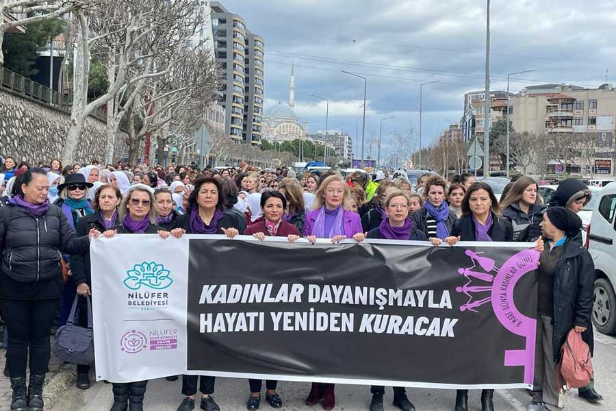 Bursa’da 8 Mart Dünya Emekçi Kadınlar Günü’nde Nilüfer Kent Konseyi Kadın Meclisi bir yürüyüş düzenleyerek basın açıklaması yaptı.