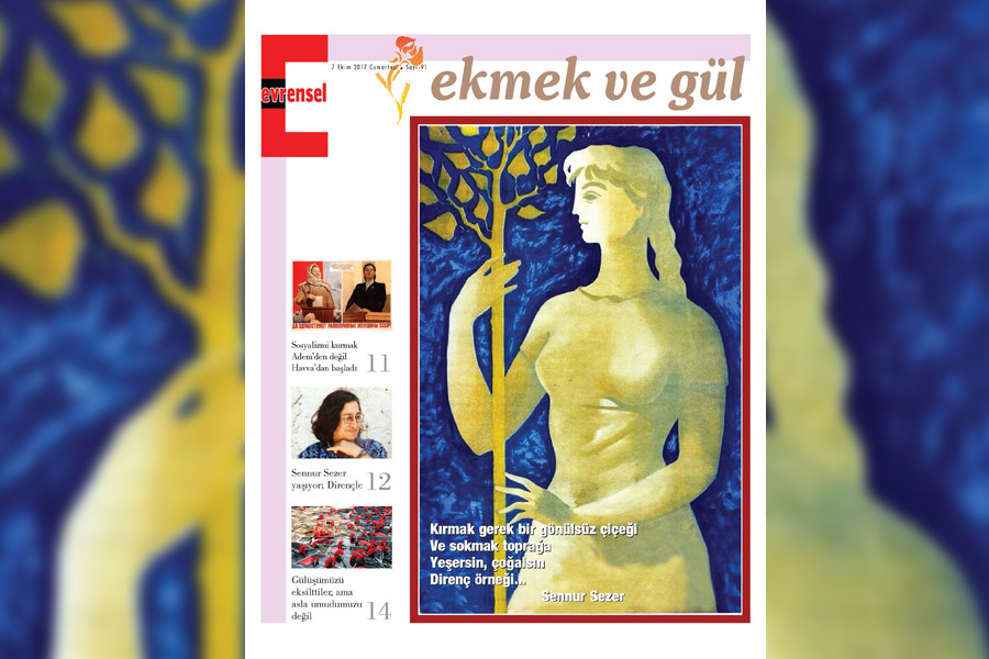 Sonra bir işçi evinin duvarındaki takvim sayfasından gülümseyen yüzünü ve dizelerini görüyorum; ezilen, sömürülen insanı sınıf kardeşleriyle birleşmeye ve mücadeleye çağıran; Sennur Sezer